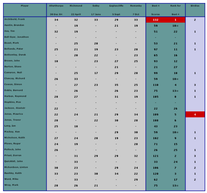 | 30th December 2004 | Allerthorpe Park | Frank Archibold |